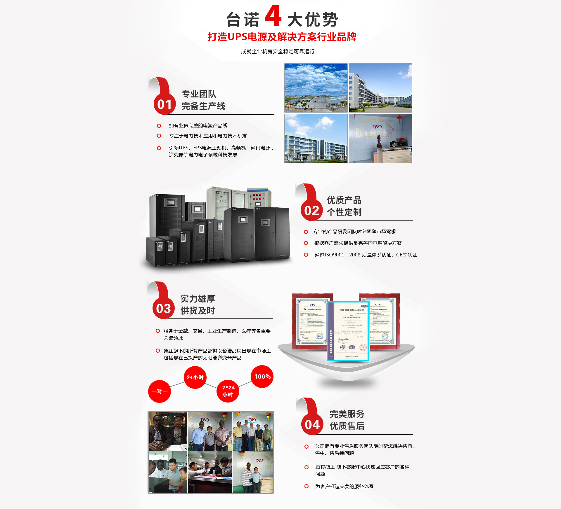 東莞市臺(tái)諾電子有限公司是一家以新能源、UPS不間斷電源、EPS應(yīng)急電源、交直流穩(wěn)壓電源、鉛酸免維護(hù)蓄電池、智能變頻電源、智能開(kāi)關(guān)電源、智能一體化逆變電源、智能電源監(jiān)控系統(tǒng)的研究、開(kāi)發(fā)、生產(chǎn)、經(jīng)營(yíng)、銷售及技術(shù)推廣等多行業(yè)發(fā)展高新企業(yè)。公司位于東莞市毗鄰中國(guó)南方經(jīng)濟(jì)重地廣州、深圳,交通發(fā)達(dá),信息暢通。系廣東重點(diǎn)高新技術(shù)企業(yè)、東莞市創(chuàng)新型企業(yè)、也是中國(guó)電源協(xié)會(huì)、廣東省材料與器件產(chǎn)業(yè)技術(shù)創(chuàng)新戰(zhàn)略聯(lián)盟、 東莞市臺(tái)諾電子有限公司隸屬于臺(tái)諾集團(tuán),是一家有多年UPS集設(shè)計(jì)研發(fā)、生產(chǎn)銷售、售后服務(wù)為一體的公司,擁有業(yè)界完整的電源產(chǎn)品線,專注于電力技術(shù)應(yīng)用和電力技術(shù)研發(fā)。公司致力于向全球客戶提供性能好、品質(zhì)好的產(chǎn)品與服務(wù)。UPS、EPS電源工頻機(jī)、高頻機(jī)、通訊電源、光伏、逆變器等電力電子領(lǐng)域科技發(fā)展,創(chuàng)造可靠、節(jié)能的產(chǎn)品,致力于為客戶提供完善的電源解決方案。產(chǎn)品廣泛應(yīng)用于政府、金融、通信、教育、交通、氣象、廣播電視、工商...